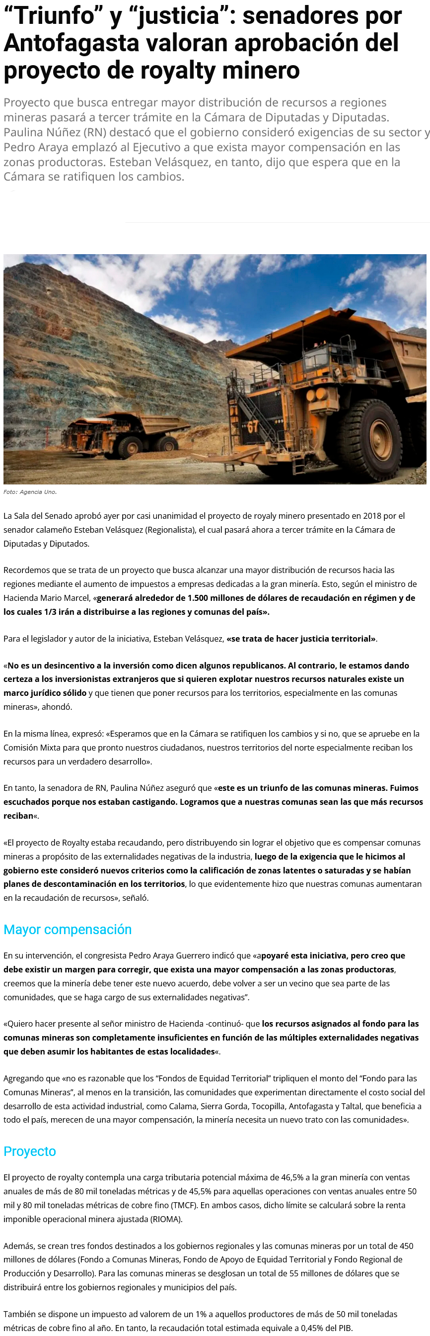 Jornada histórica para el norte: Senado aprueba casi por unanimidad proyecto de Royalty Minero - (diarioantofagasta)