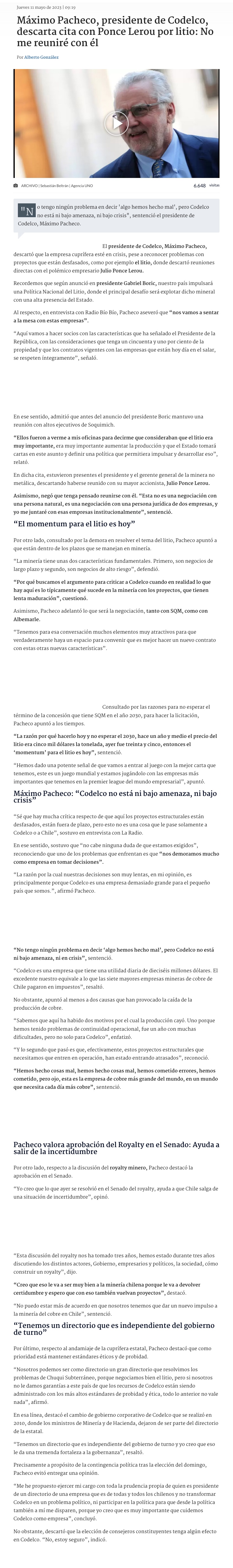 Minería y Codelco: los nuevos desafíos de la Estrategia del Litio - (Radio Biobío)