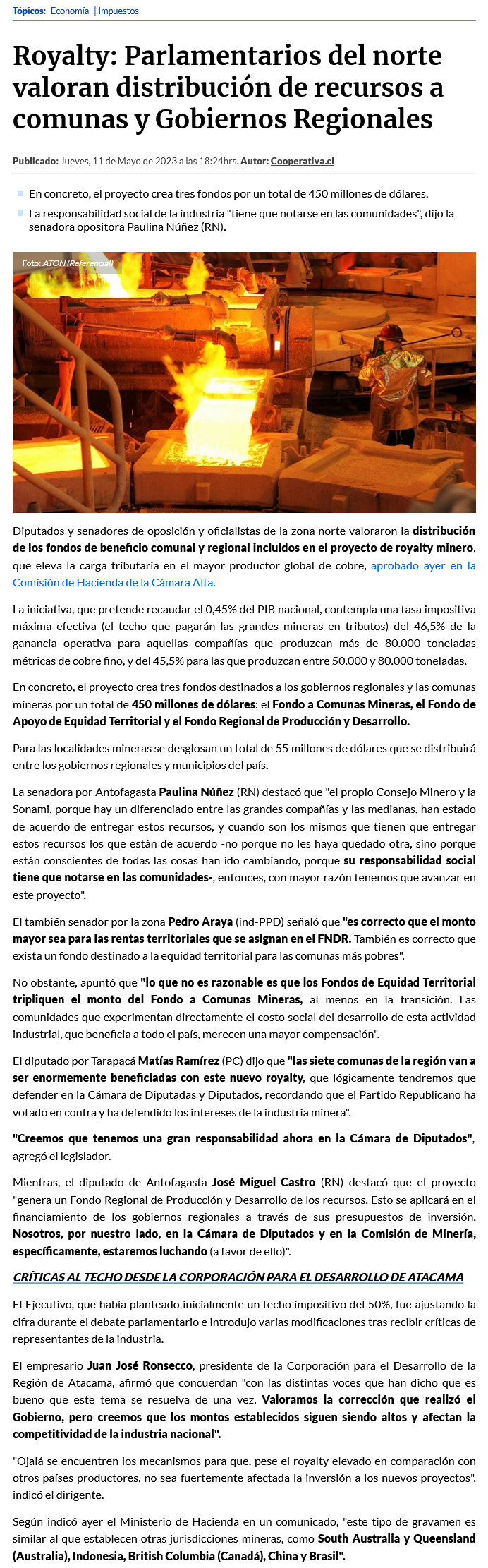 Jornada histórica para el norte: Senado aprueba casi por unanimidad proyecto de Royalty Minero - (diarioantofagasta)