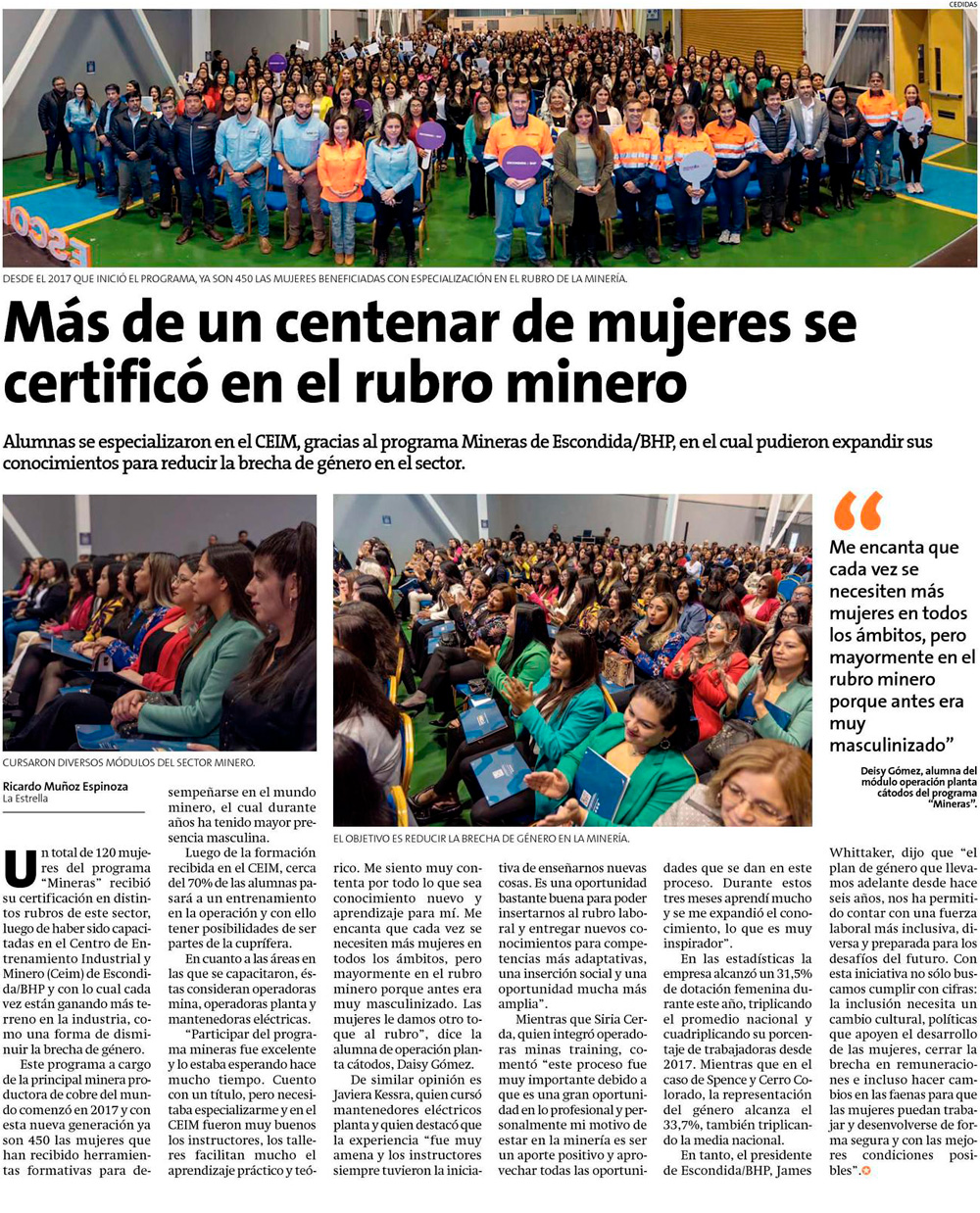 Más de un centenar de mujeres se certificó en el rubro minero - (Estrella de Antofagasta)