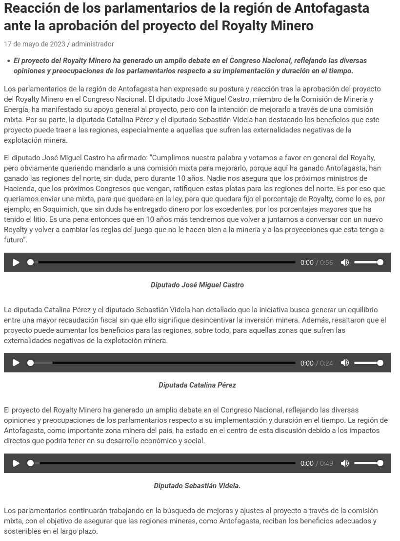 Congreso despacha el proyecto de Royalty a la gran minería del cobre y queda listo para ser ley - (El Mercurio de Calama)