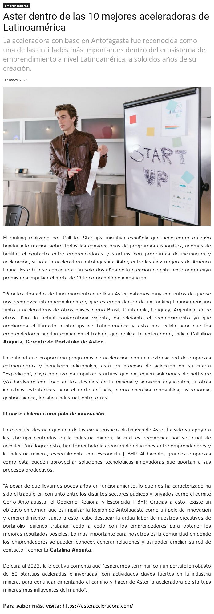 Aster dentro de las 10 mejores aceleradoras de Latinoamérica - (presslatam.cl)