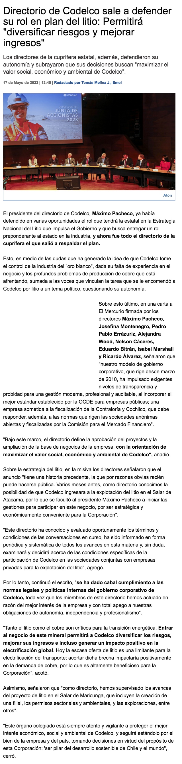 Estatal Codelco reorganiza los comités de su directorio - (El Mercurio de Santiago)