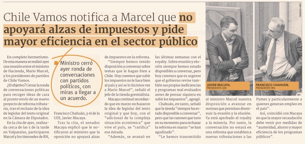 Marcel concreta reunión con RN-UDI por reforma tributaria y espera lograr un acuerdo a fines de junio - (Pulso)