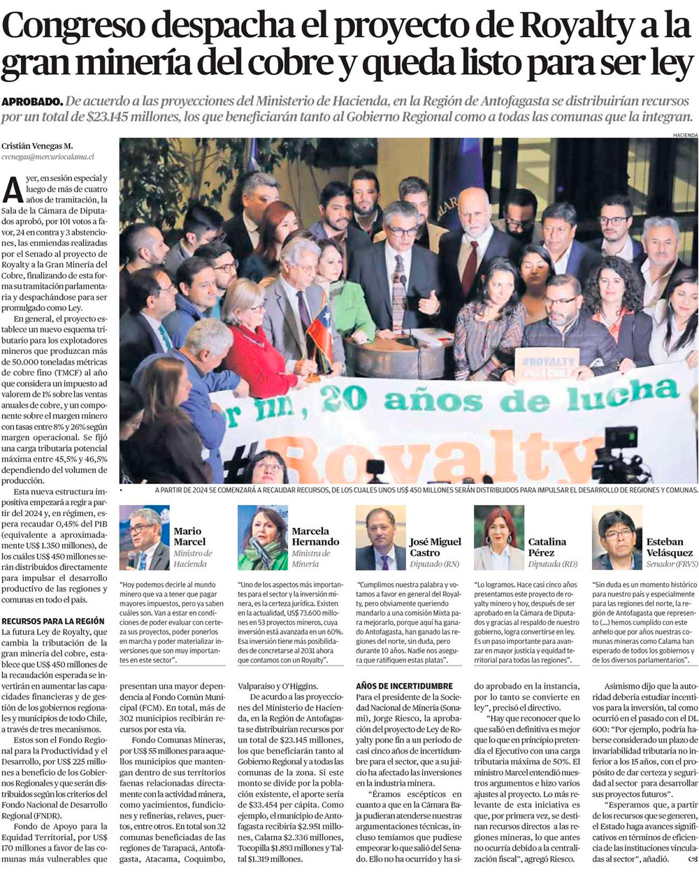 Reacción de los parlamentarios de la región de Antofagasta ante la aprobación del proyecto del Royalty Minero - (diarioangamos)