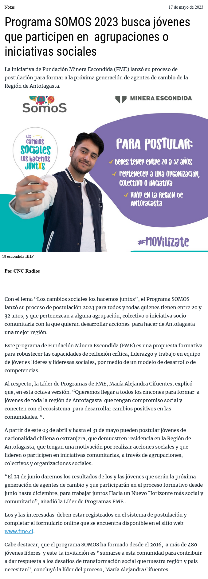 Programa SOMOS 2023 busca jóvenes que participen en agrupaciones o iniciativas sociales - (fmquiero.cl)