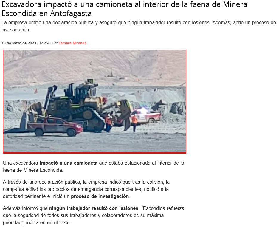 Máquina excavadora impactó a camioneta en Minera Escondida - (antofagasta.tv)