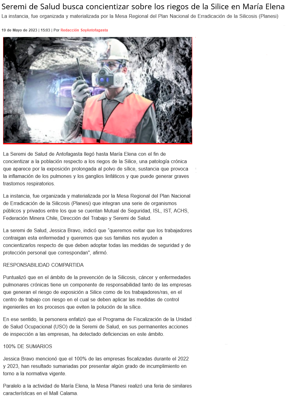 Mesa regional Planesi busca concientizar sobre los riesgos de la silicosis - (Estrella del Loa)