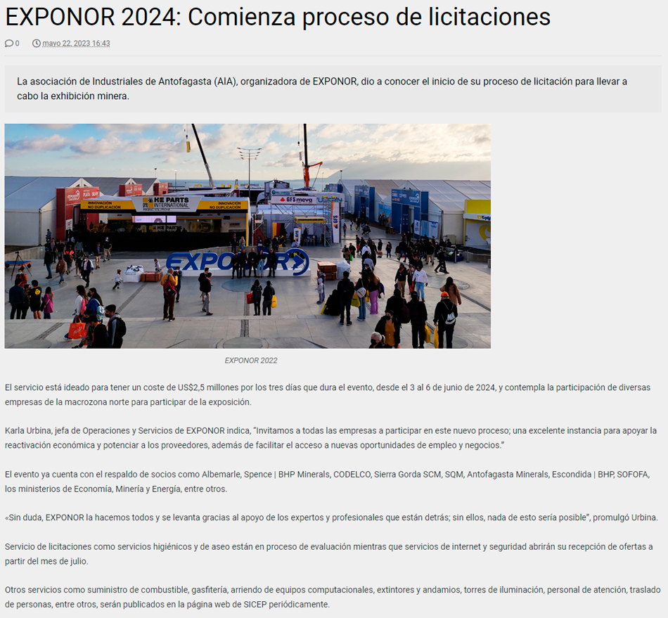 EXPONOR 2024 iniciará próximamente licitación de sus servicios - (diarioangamos)