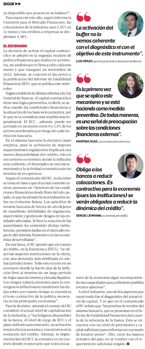 Banco Central activa exigencia de capital contracíclico para la banca por deterioro de situación externa - (Diario Financiero)