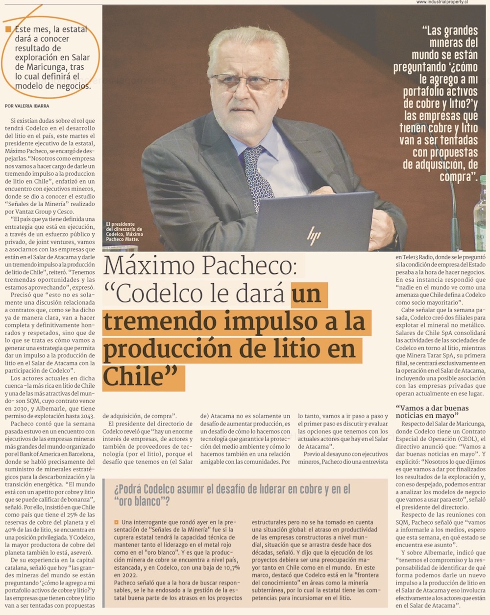 Litio: Codelco informaría esta semana inicio de las negociaciones con SQM - (El Mercurio de Santiago)