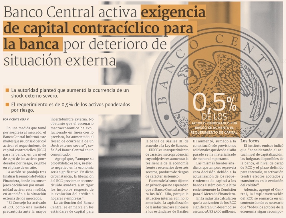 Banco Central sorprende y activa resguardo de capital de US$1.500 millones en la banca local ante riesgo financiero internacional - (Pulso)