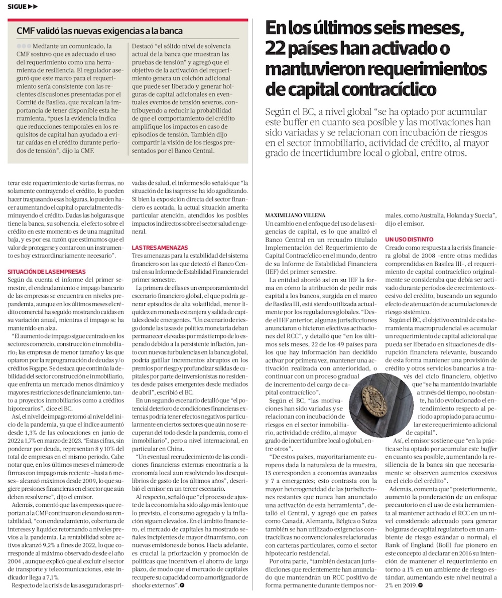 Banco Central explica mayores exigencias de capital a la banca y descarta efectos negativos en el sector y la economÃa - (Diario Financiero)