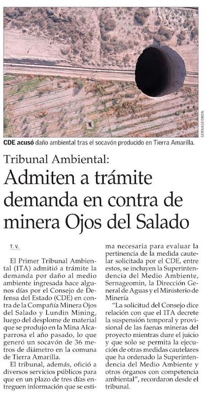 Tribunal inicia proceso por demanda de daƱo ambiental contra Lundin y Ojos del Salado - (El Diario de Atacama)