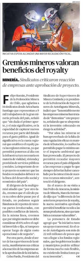 Gremios se declaran en "relativa conformidad" por cierre de la discusión del royalty - (El Diario de Atacama)