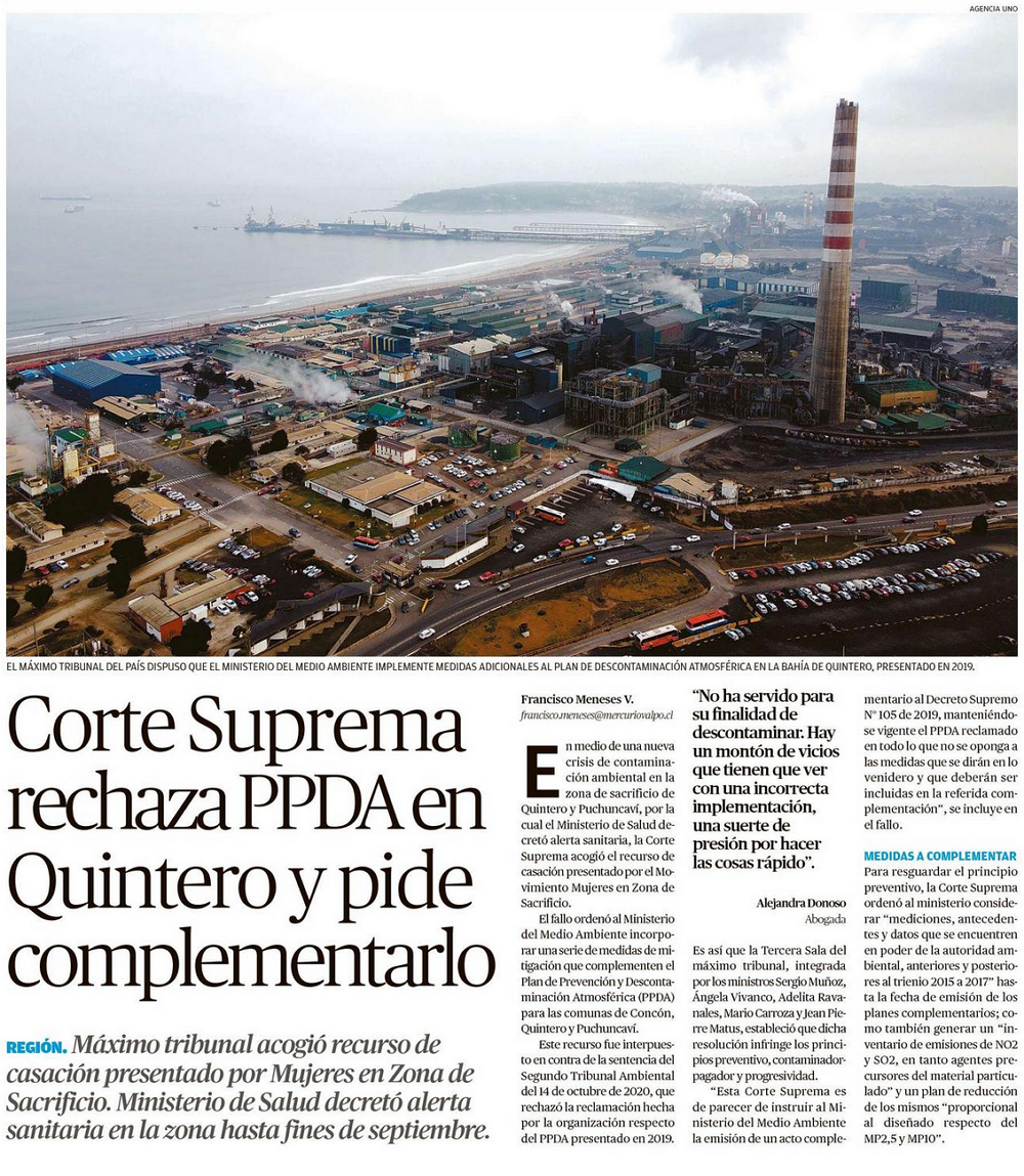 Suprema fijó cambios a plan ambiental de Concón, Quintero y Puchuncaví - (El Mercurio de Santiago)