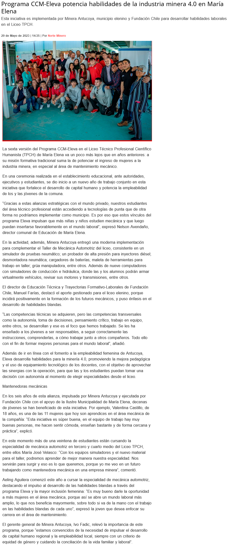 Lanzaron la sexta versión en María Elena: Programa CCM-Eleva potencia habilidades del siglos XXI para la industria minera - (tierramarillano.cl)
