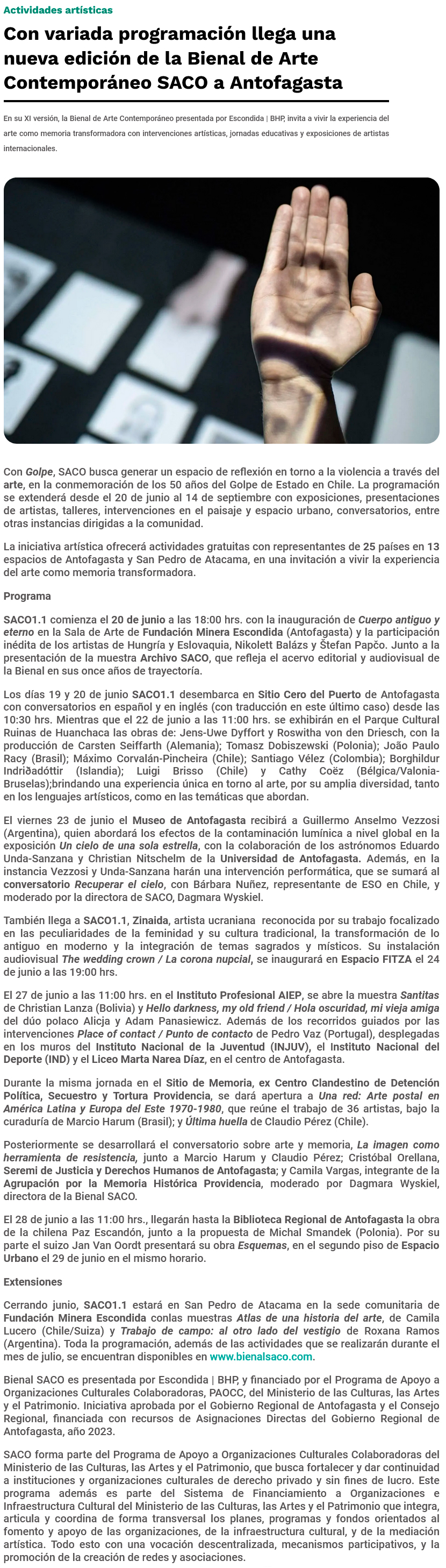 Con variada programación llega una nueva edición de la Bienal de Arte Contemporáneo SACO a Antofagasta - (culturizarte.cl)