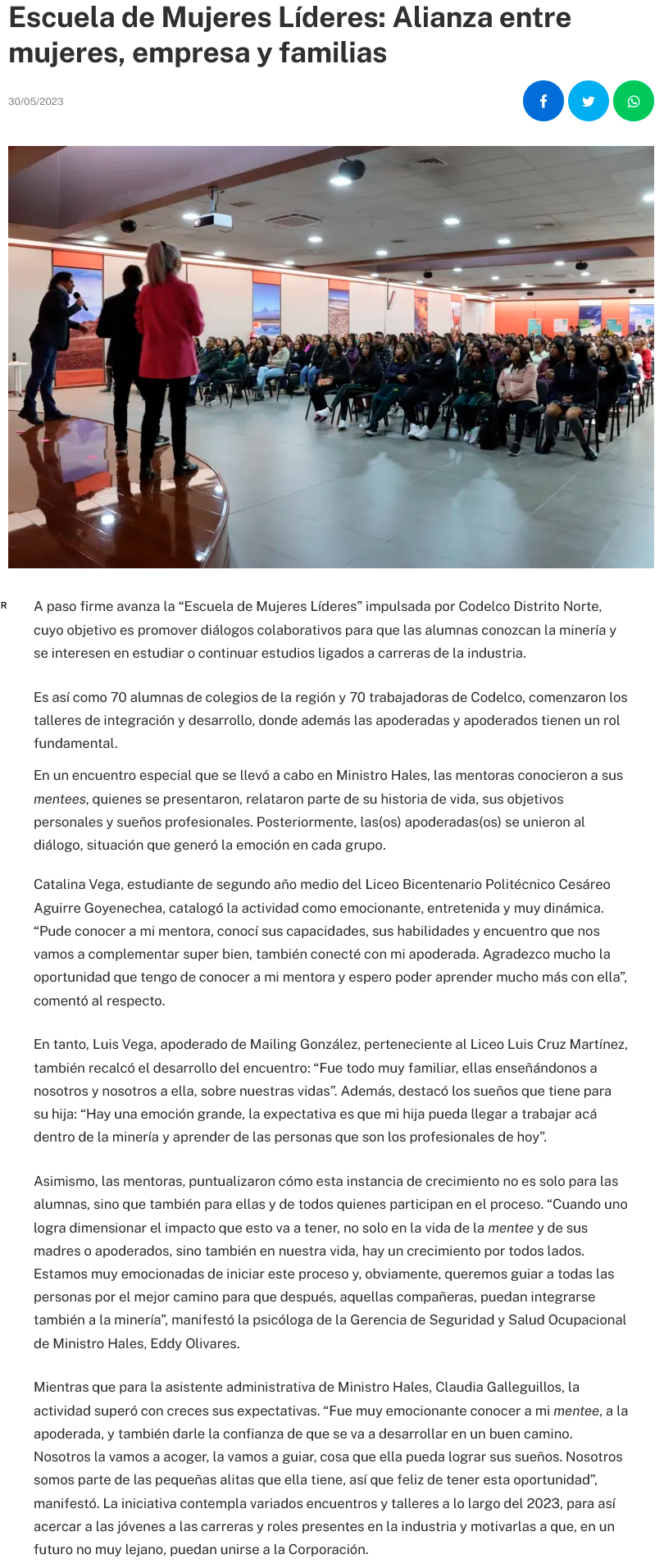 Setenta estudiantes iniciaron la Escuela de Mujeres LĂderes - (El Mercurio de Calama)