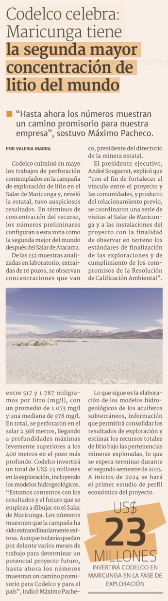 Codelco: Marincuga tiene la segunda concentración de litio más alta reconocida en salares a nivel mundial - (Pulso)