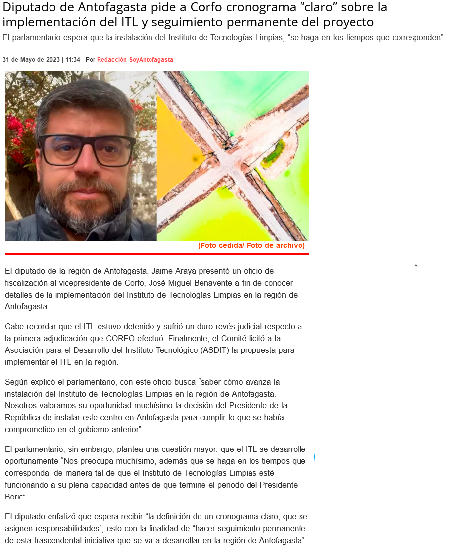 Ofician a la Corfo para conocer cronograma de implementación del ITL - (El Mercurio de Antofagasta)