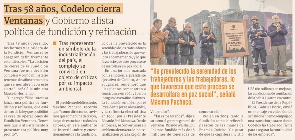 Ahora en DF | Cierre definitivo de Fundición Ventanas marca el inicio de una nueva política de fundición y refinería impulsada por el Gobierno - (DF Online)