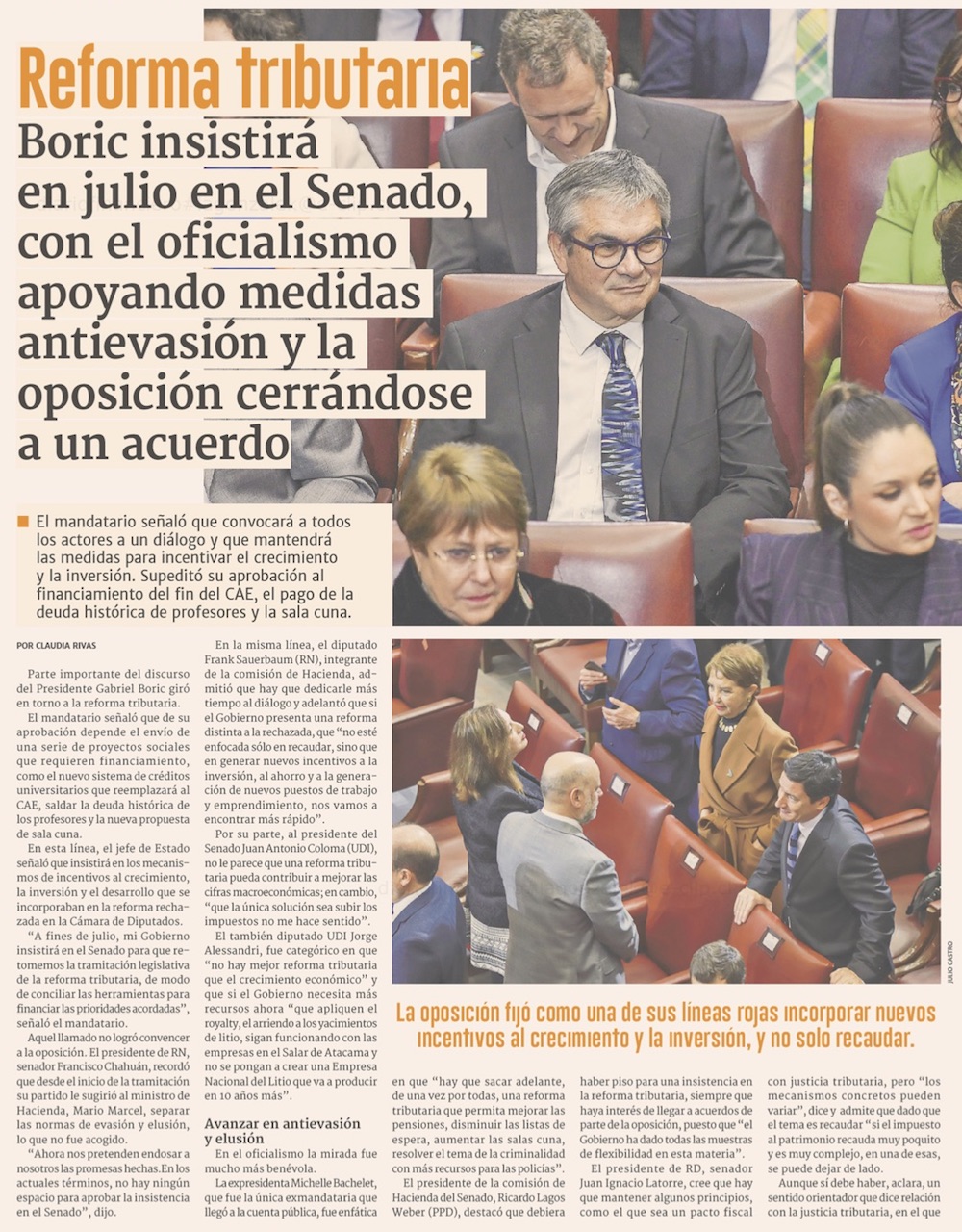 Boric condiciona su nuevo orden de prioridades al destino de la reforma tributaria - (El Mercurio de Santiago)