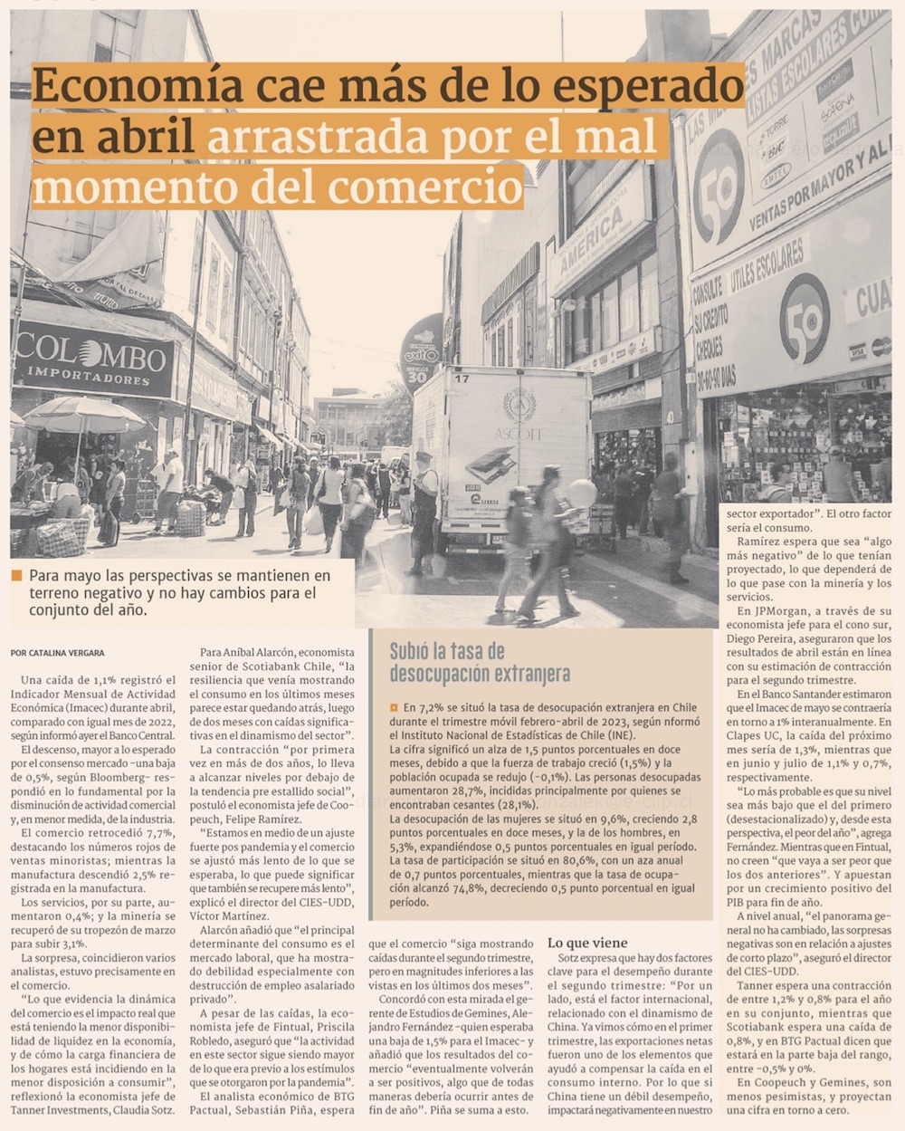 La actividad en abril cae 1,1% anual: comercio e industria sufren la mayor contracción - (El Mercurio de Santiago)