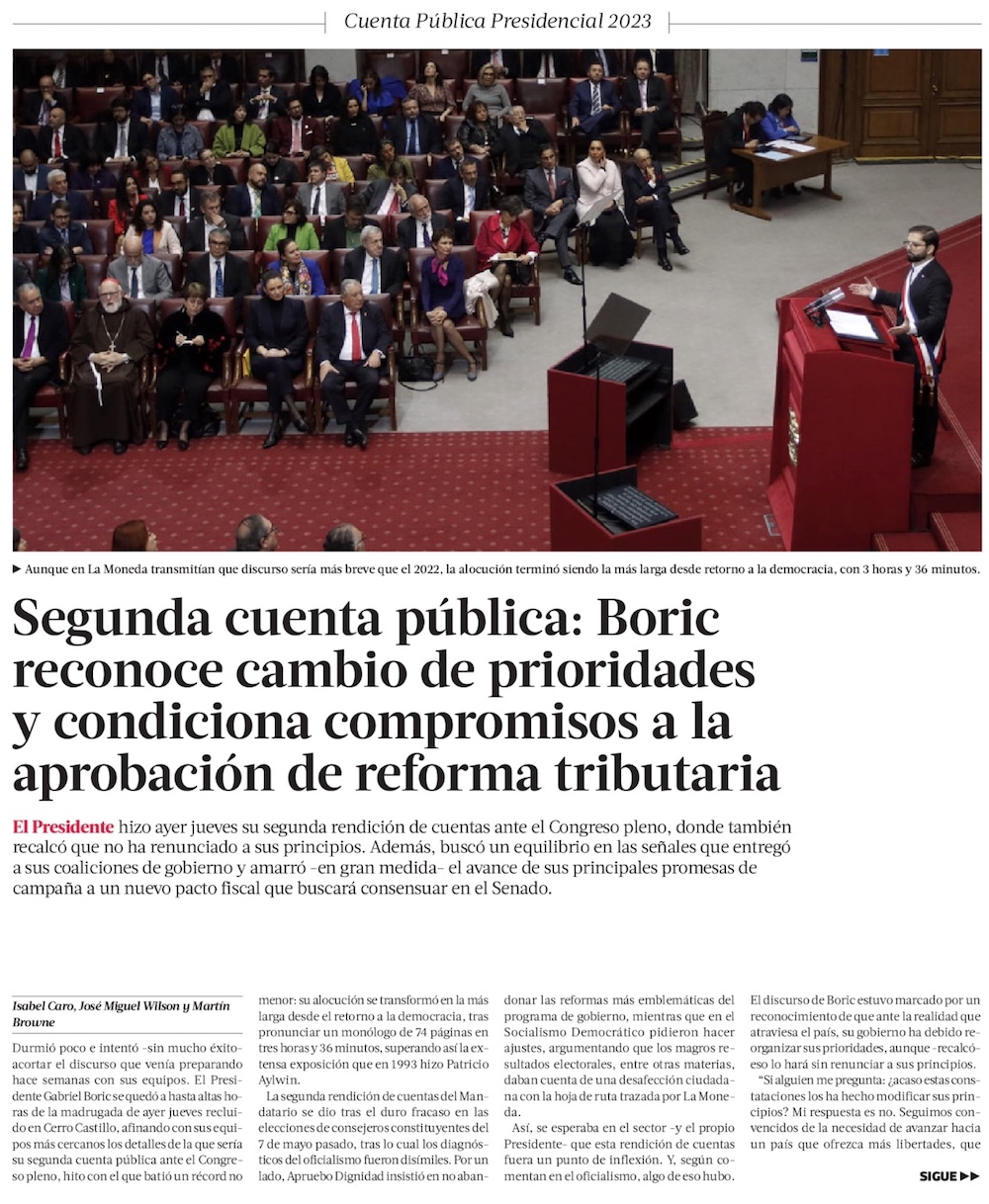 Boric condiciona su nuevo orden de prioridades al destino de la reforma tributaria - (El Mercurio de Santiago)