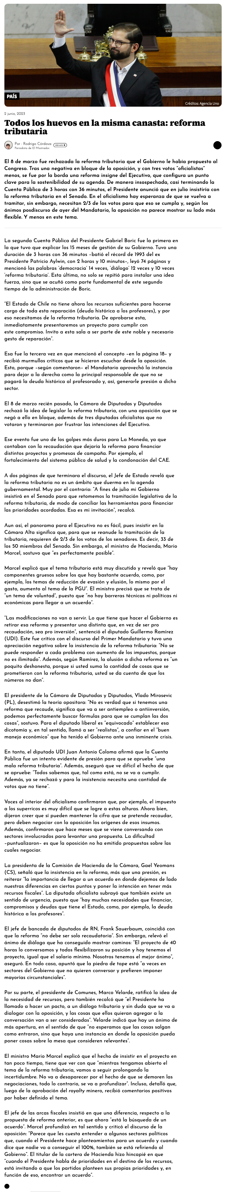 Boric condiciona su nuevo orden de prioridades al destino de la reforma tributaria - (El Mercurio de Santiago)