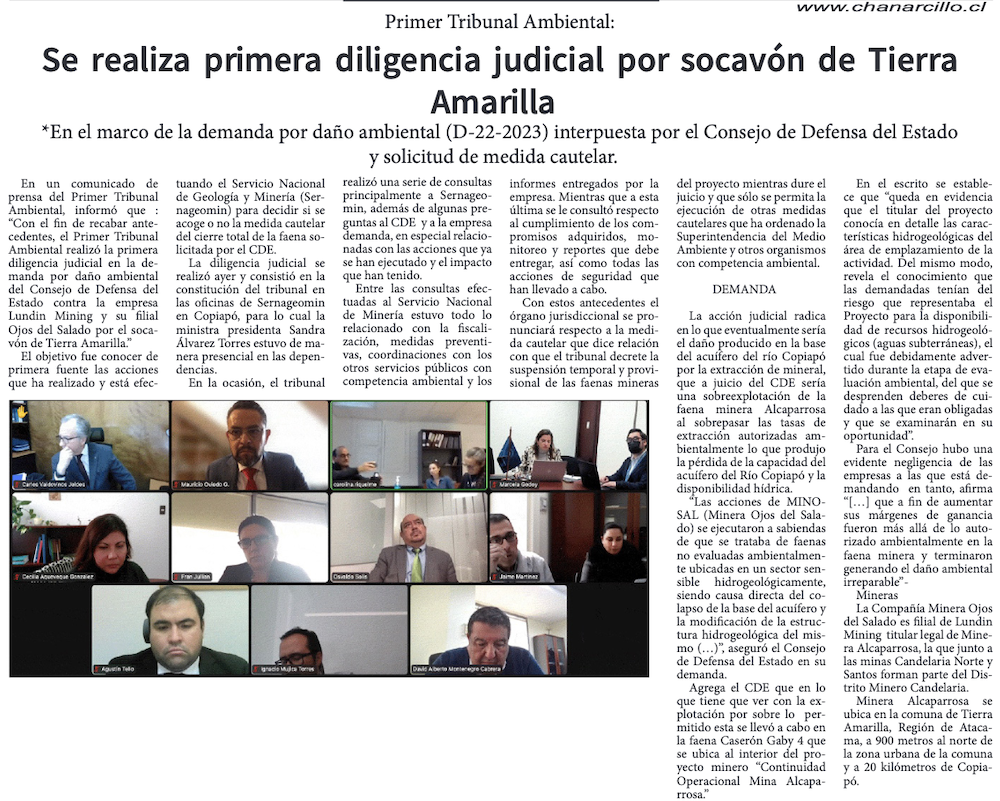 Primer Tribunal Ambiental realiza primera diligencia judicial por socavón de Tierra Amarilla - (El Diario de Atacama)