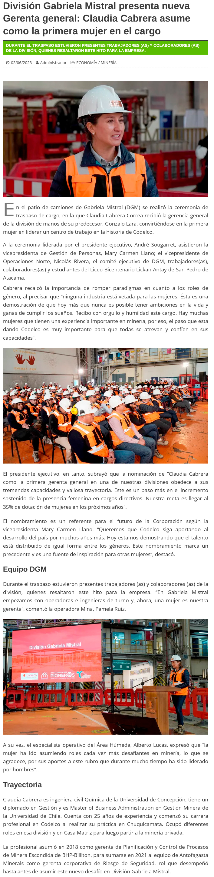 Codelco hace historia al nombrar a Claudia Cabrera como gerenta general de la División Gabriela Mistral - (poderyliderazgo)