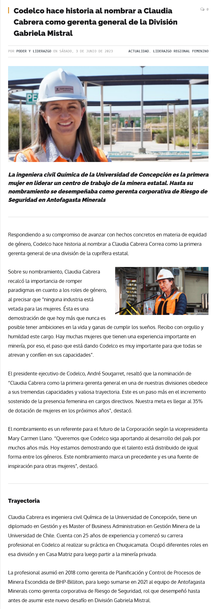 División Gabriela Mistral presenta nueva Gerenta general: Claudia Cabrera asume como la primera mujer en el cargo - (elreferente.cl)