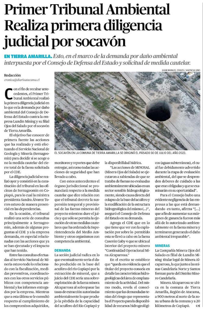 Socavón en Tierra Amarilla: tribunal realiza primeras diligencias tras demanda por daño ambiental - (biobiochile online)