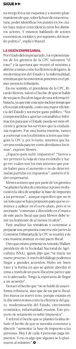 Empresarios acogen la estrategia del Gobierno para un pacto fiscal y piden a parlamentarios “ser escuchados” - (El Mercurio de Santiago)