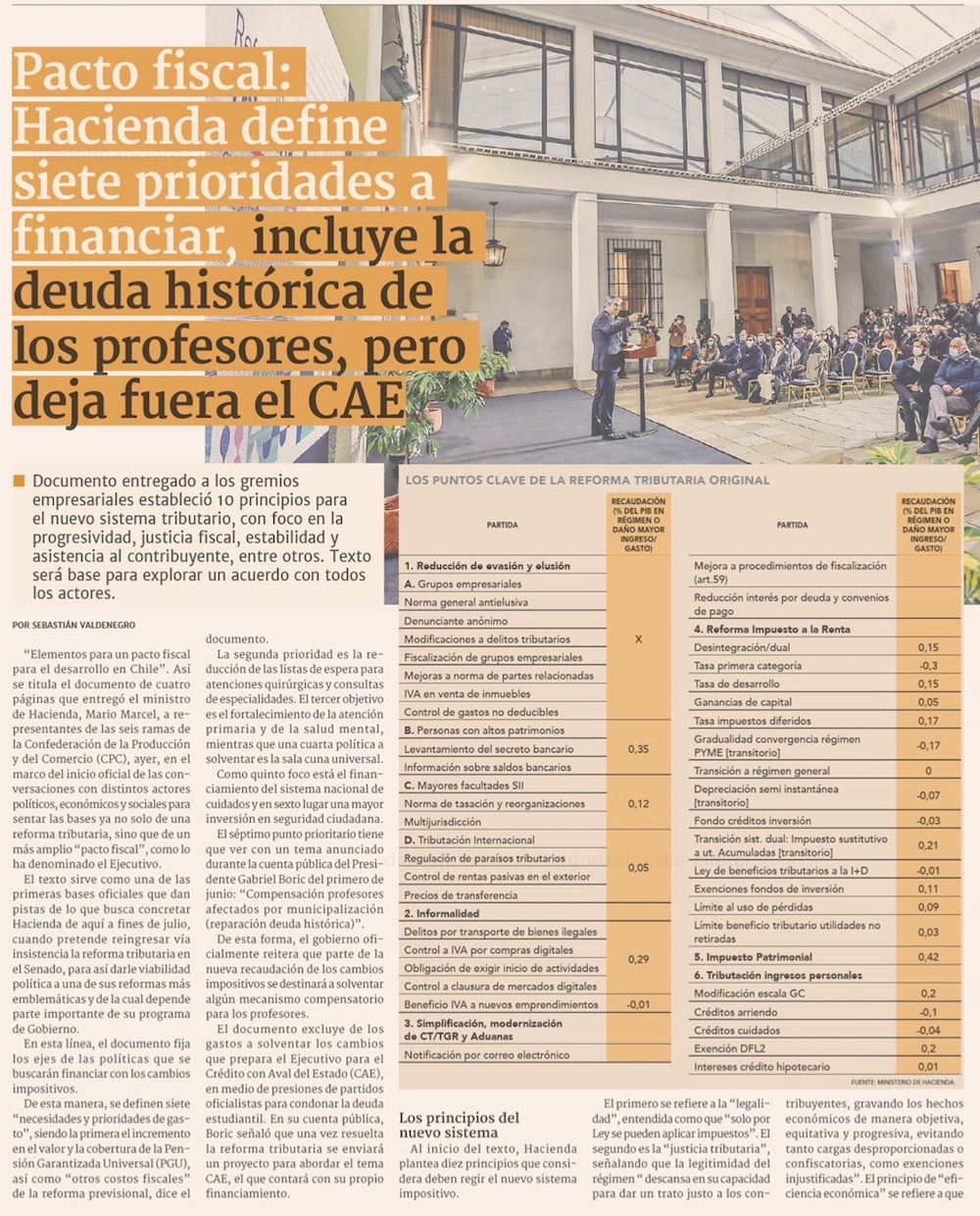 Reforma tributaria: Hacienda define siete destinos para la recaudación y CPC plantea ampliar la base del impuesto a las personas - (Pulso)