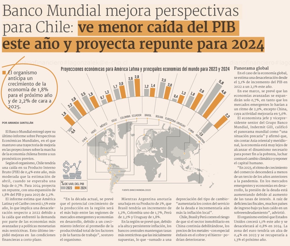 Banco Mundial vuelve a mejorar su mirada sobre la economía de Chile para este año, pero sigue apostando a que se contrae - (Pulso)