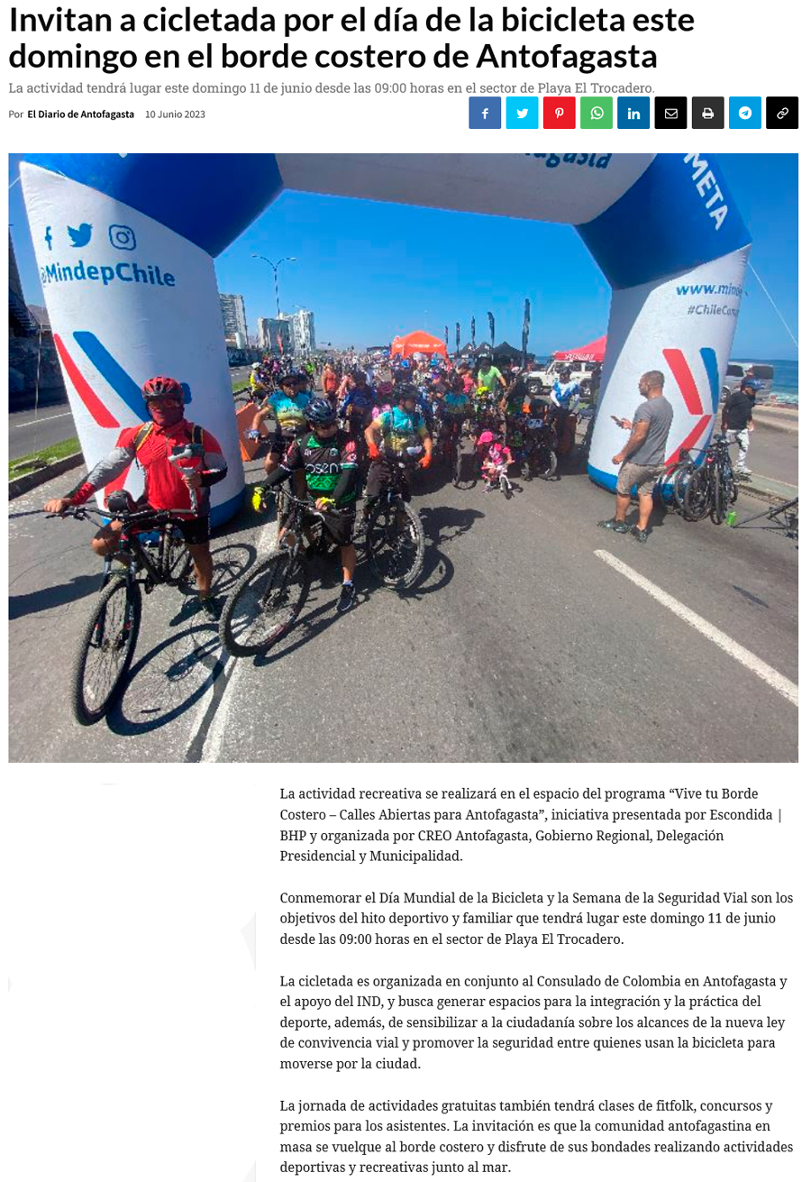 Todo Antofagasta está invitado a la cicletada por el día de la bicicleta en el borde costero - (madero.cl)