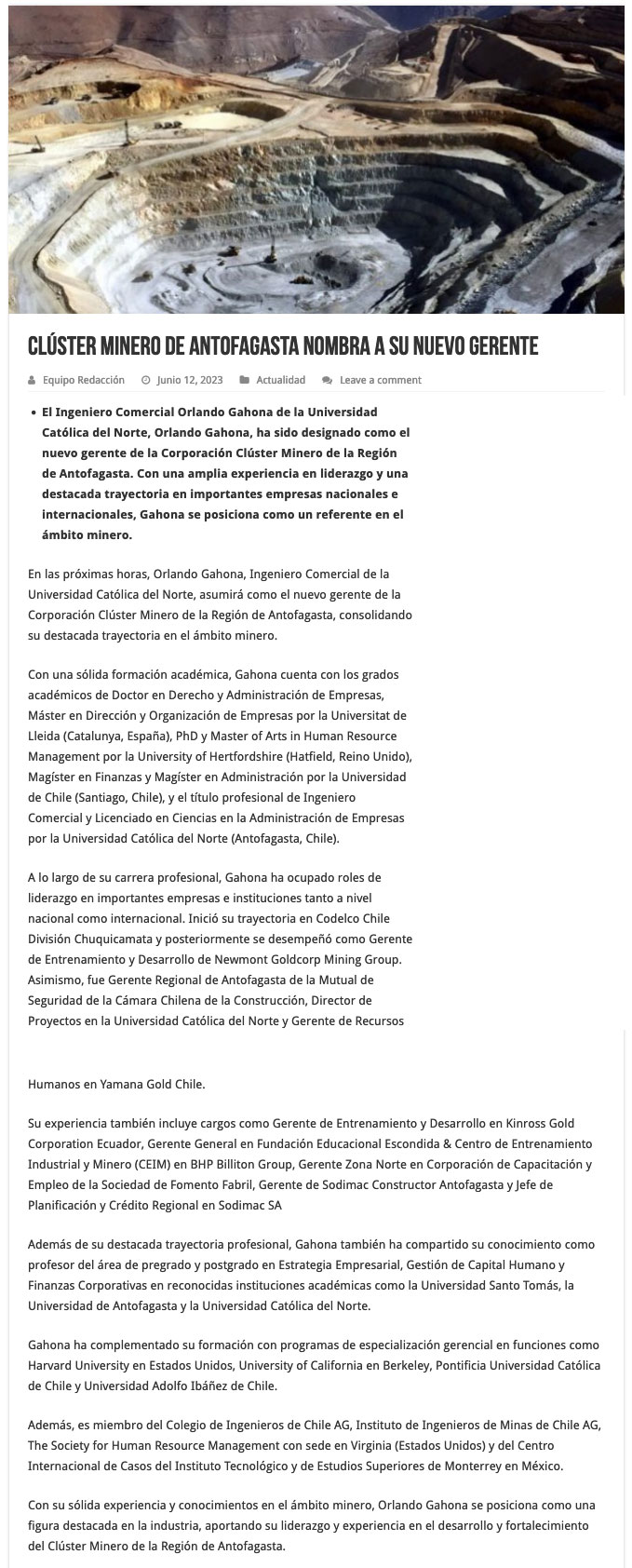Región de Antofagasta: Orlando Gahona asume como nuevo gerente de la Corporación Clúster Minero - (timeline)