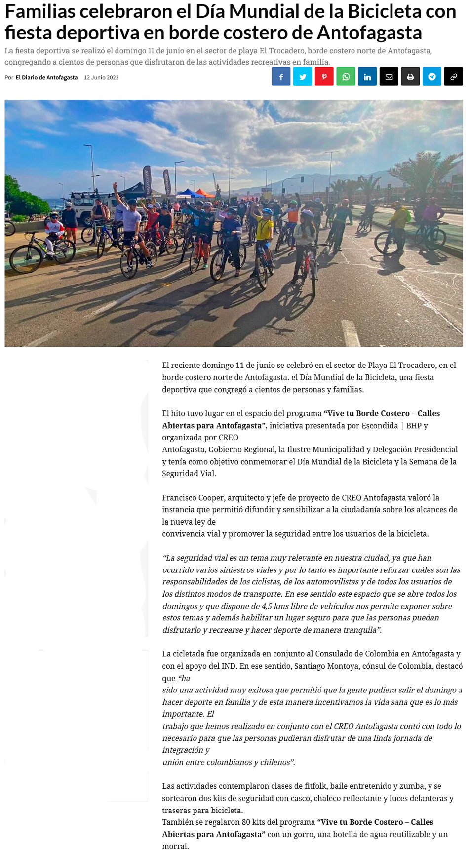 Con cicletada familiar conmemoraron el Día Mundial de la Bicicleta en el borde costero de Antofagasta - (timeline)