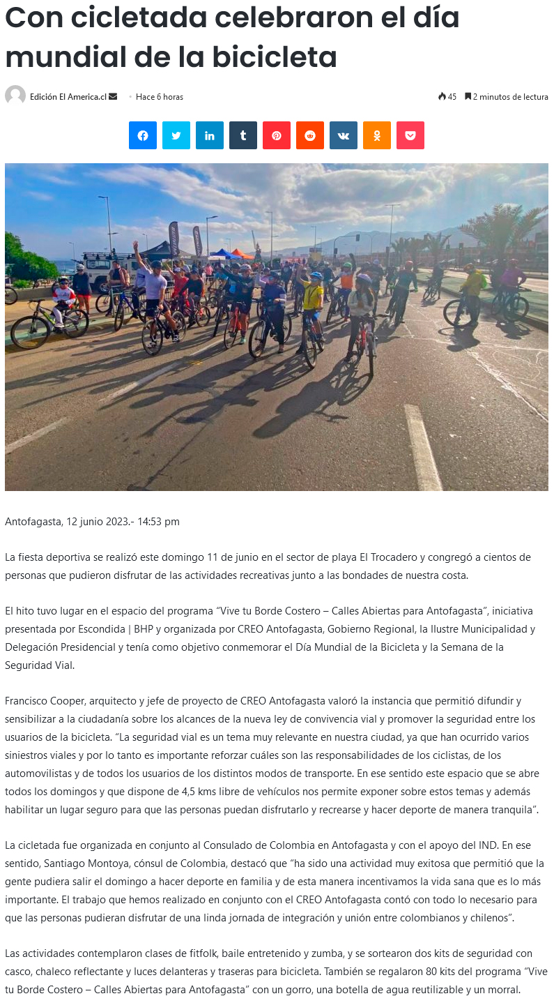 Con cicletada familiar conmemoraron el Día Mundial de la Bicicleta en el borde costero de Antofagasta - (timeline)