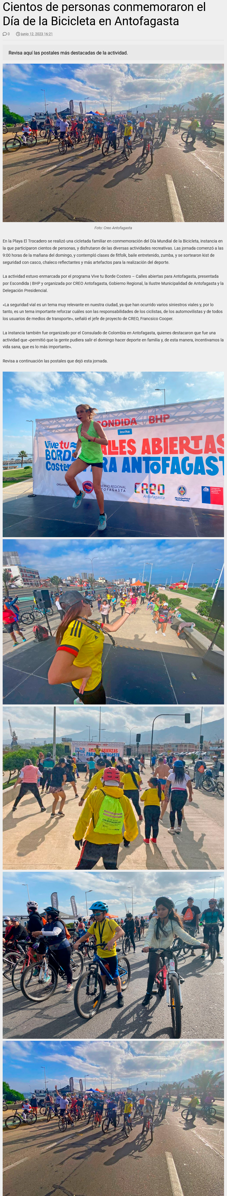 Con cicletada familiar conmemoraron el Día Mundial de la Bicicleta en el borde costero de Antofagasta - (timeline)
