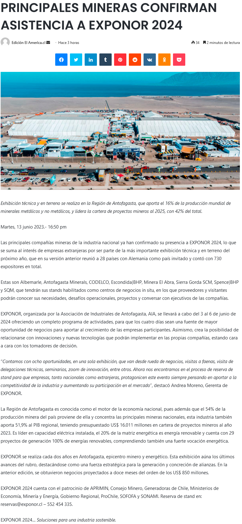 Principales mineras son las primeras en confirmar asistencia a Exponor 2024 - (diarioangamos)