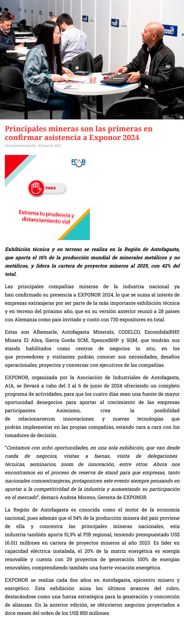 Principales mineras son las primeras en confirmar asistencia a Exponor 2024 - (diarioangamos)