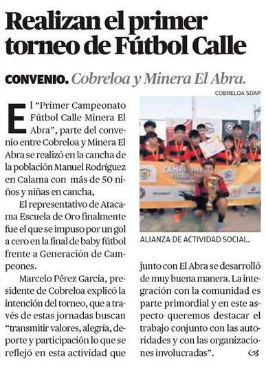 Cobreloa realizó Primer Campeonato de Fútbol Calle junto a Minera El Abra - (elamerica)