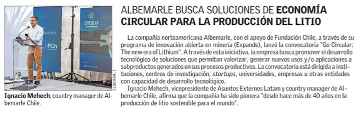 Albemarle abre convocatoria de innovación para promover soluciones de economÃa circular en torno al litio - (madero.cl)
