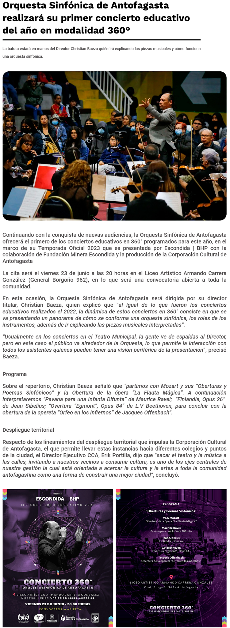 Orquesta Sinfónica de Antofagasta realizará su primer concierto educativo del año en modalidad 360° - (termometro.cl)