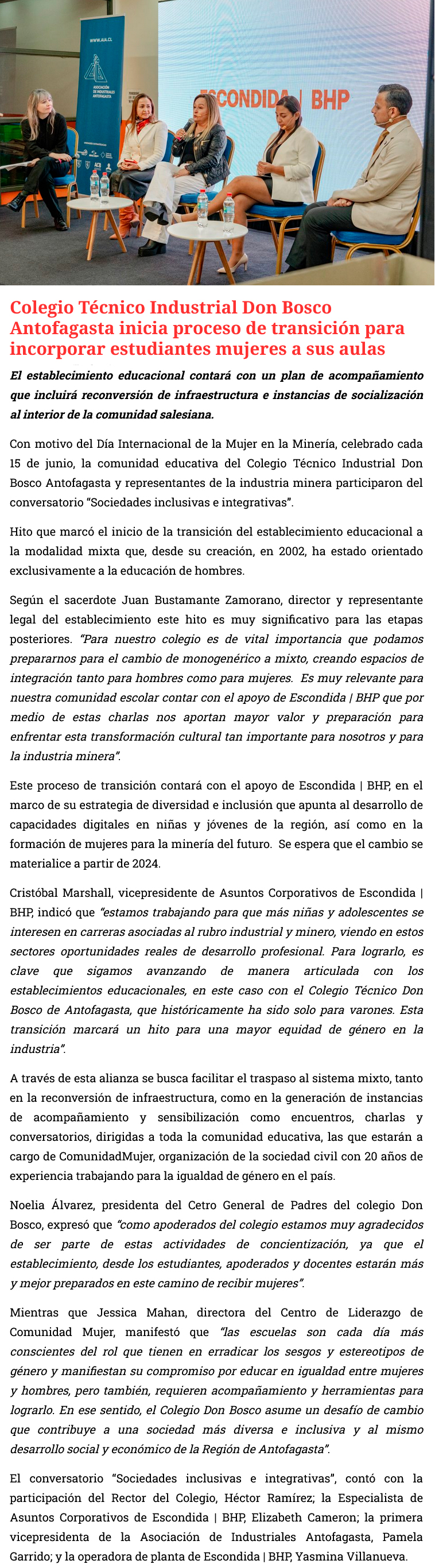 Escondida | BHP apoyará a Colegio Don Bosco en la incorporación de alumnas al establecimiento - (mch.cl)