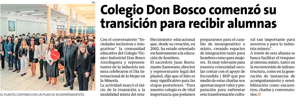 Colegio Don Bosco comenzó su transición para recibir alumnas - (Estrella del Loa)