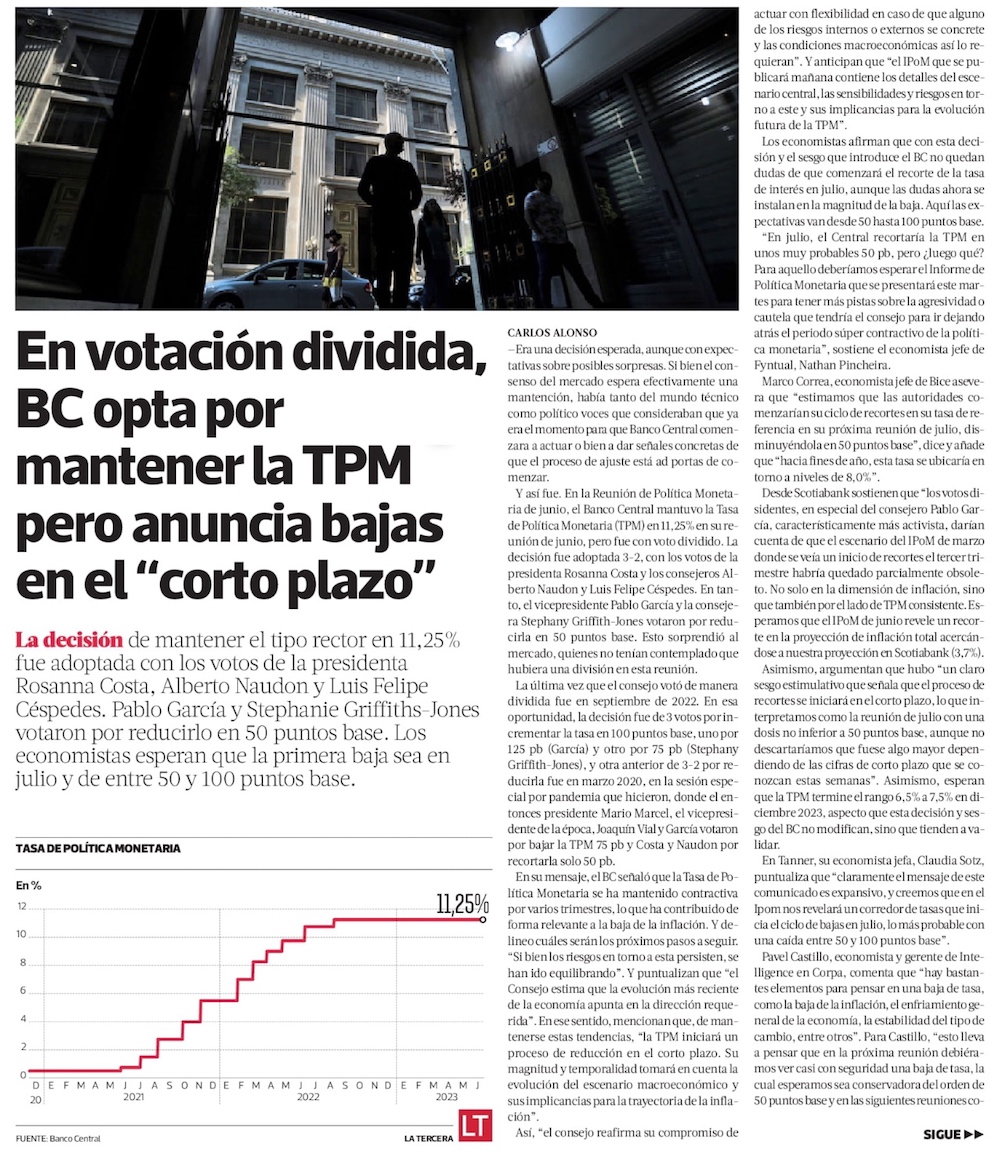 En voto dividido, el Banco Central mantiene la tasa en 11,25% y apronta el inicio de recortes - (El Mercurio de Santiago)